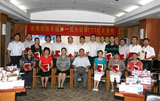 為科學開發、有效講授培訓課程,提高內訓師專業水平, 9月1—2日在合肥新世紀酒店,經過公司本部和五大子公司推薦選拔的安糧控股系統首批內訓師20余人,參加了為期兩天的內訓師TTT培訓。葛志毅副總裁到會,代表公司為內訓師頒發了聘書并講話。
