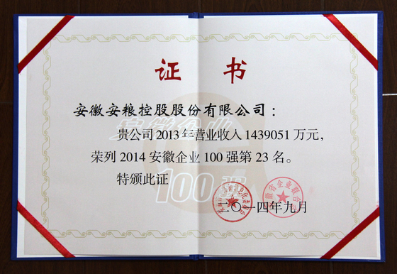 9月26日,“2014安徽企業100強高峰論壇”在蕪湖市召開。安徽省經信委、安徽企業聯合會發布了2014年安徽100強企業名單,公司位列2014安徽企業100強第23位。此前在由中國企業聯合會、中國企業家協會組織的2014中國服務業500強企業評選中,公司位列2014中國服務業企業500強第195位。