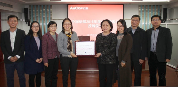 11月19日上午,中國出口信用保險公司安徽分公司馬衛星總經理一行蒞臨安糧實業,舉行 “中國出口信用保險公司2015年度AAA+級客戶”評級的授牌儀式。