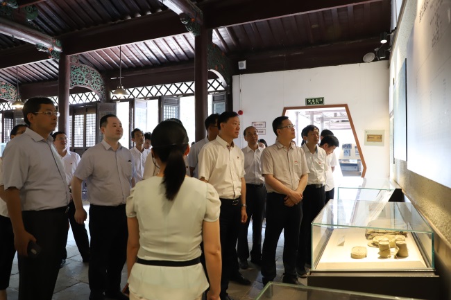 在瑤崗渡江戰役總前委舊址,黨員同志們在現場講解員的帶領下,認真觀看渡江戰役紀錄片,細致瀏覽一張張泛黃的歷史照片和珍貴的文獻實物,仔細端詳著陳舊卻依舊閃光的戰斗槍支、大刀和一件件浸潤著先烈血汗的棉褥、草鞋,在生動的講述中,感受70年前那段慷慨激昂、艱苦卓絕的革命歲月。