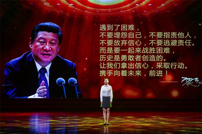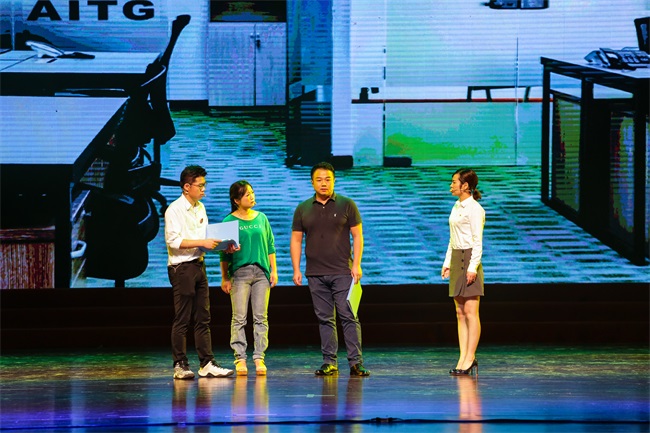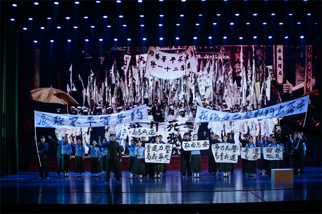 情景劇《使命的接力》分為四個(gè)篇章,前三個(gè)篇章以五四運(yùn)動(dòng)、抗日戰(zhàn)爭、新中國成立以及改革開放等重要時(shí)間節(jié)點(diǎn)為背景,節(jié)選具有鮮明時(shí)代烙印的畫面,講述了一百年來中國人民的民族氣節(jié)和不屈不饒的奮斗歷程;最后一個(gè)篇章則回歸到當(dāng)下外貿(mào)工作中的一個(gè)真實(shí)場(chǎng)景,描述了新時(shí)代國貿(mào)人接過前輩的接力棒,不忘初心、牢記使命,在一次次的磨礪中不斷成長,立志為中華民族偉大復(fù)興貢獻(xiàn)力量的動(dòng)人故事。
