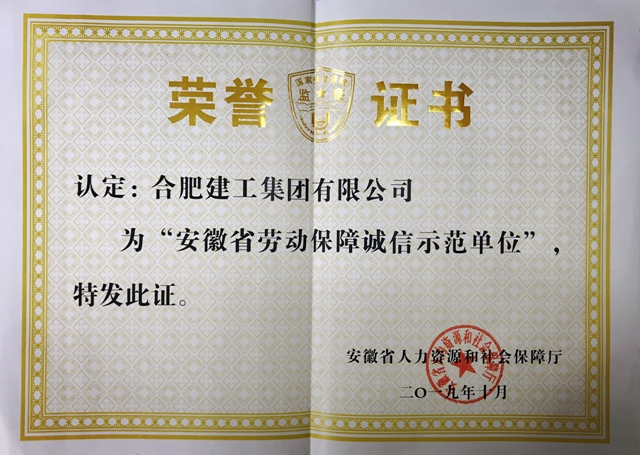 合肥建工榮獲“安徽省勞動保障誠信示范單位”稱號