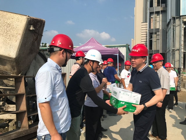 炎炎夏日送清涼,殷殷關懷鼓干勁。在持續的高溫天里,集團領導掛懷著項目一線員工的生產生活,情系項目基層一線,身體力行送清涼表達慰問和關懷,讓奮戰在項目一線的員工們在酷暑高溫里感受到了絲絲涼意。
