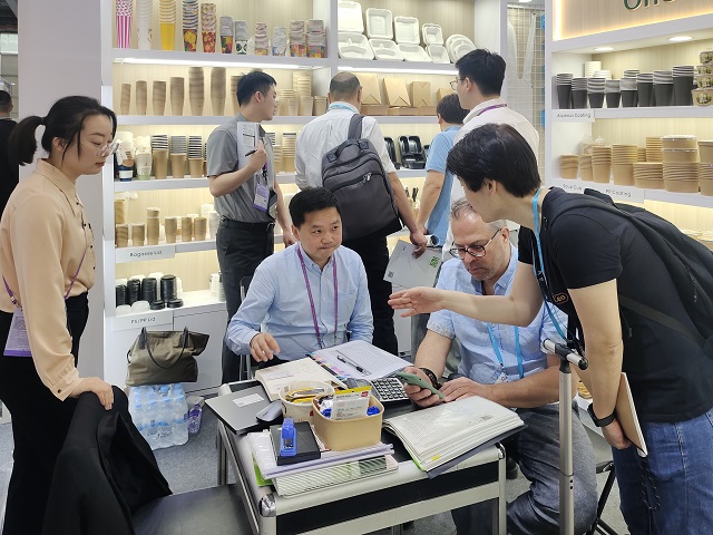 安糧家居展位由安糧國際日用品事業部攜數百款單品展出,產品幾乎覆蓋一次性餐廚全套系列。本次展會重點推出了全新的PHA高端系列以及壽司盒、紙盤、甘蔗漿吸管、超細纖維抹布等新品,在館內格外醒目、深受青睞。此外,部門順應綠色環保趨勢,推出了一系列最新環保產品,吸引了不少具有環保意識的客戶群體關注。攤位模擬國外超市擺放,仿造小型超市。擺放的產品統一設計包裝,著眼聚焦“產品系列化+全流程服務”,為全球采購商提供便利的“一站式采購服務”,獲得新老客戶的一致認可與好評。