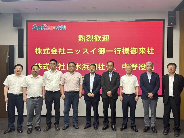 7月2日,日水浜田社長一行在安糧集團(tuán)總裁楊曉剛陪同下,抵達(dá)安糧實(shí)業(yè)直屬工廠——巢湖嘉誼食品有限公司(以下簡稱“巢湖嘉誼”)進(jìn)行訪問。座談會(huì)上雙方圍繞著良好的合作歷史、目前合作業(yè)務(wù)開展情況以及未來合作發(fā)展方向等議題深入交流,希望借助日水品牌的全球影響力,充分發(fā)揮日水創(chuàng)新研發(fā)技術(shù)優(yōu)勢(shì)和安糧制造優(yōu)勢(shì),不斷推出特色新產(chǎn)品開拓國內(nèi)外市場。會(huì)上,楊曉剛表示未來安糧食品產(chǎn)業(yè)園規(guī)劃專設(shè)日水產(chǎn)品業(yè)務(wù)板塊,希望可以在日水產(chǎn)品進(jìn)口、日水技術(shù)安糧加工、開發(fā)中國市場方面進(jìn)行全方位合作,推動(dòng)雙方友好合作再上新臺(tái)階。隨后,日水浜田社長一行參觀了工廠的生產(chǎn)車間,工廠負(fù)責(zé)人重點(diǎn)介紹了安糧旗下兩家日水合作工廠巢湖嘉誼和安慶嘉潤吸收合并、業(yè)務(wù)整合及相關(guān)工廠改造具體情況,同時(shí)詳細(xì)介紹了日水產(chǎn)品生產(chǎn)全過程,各工序嚴(yán)格的品質(zhì)控制得到了日水一行的肯定。
